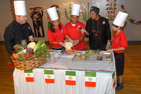 Recipe team members at Liberty were school nutrition professional, Sharon Springer; Chef Ed Colleran, Executive Sous Chef at Universal Studios in Orlando, Fla.; community member Ms. Sarah Thornquest; and students Joshua, Tyler, Kimberly, Shalima, and Priscilla.
