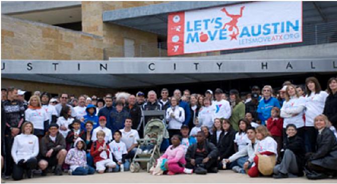 Austin Mayor Lee Leffingwell heads the Mayor’s Fitness Council, which aims to support and inspire people to improve their health by encouraging physical activity, improved nutrition, and tobacco-free living. In November of 2010, Mayor Leffingwell issued a proclamation voicing his support for the First Lady’s Let’s Move! initiative and designating 2011 as “Austin’s Let’s Move! Year.” The Mayor’s dedication to this important cause has made it possible for community-based organizations like the YMCA to work with the local government to engage the entire Austin community. “The Mayor’s support and enthusiasm was a key reason the YMCA got behind the Let’s Move campaign. His strong leadership really helped to focus our efforts,” says Sean Doles, Marketing and Communications Director at the YMCA of Austin.