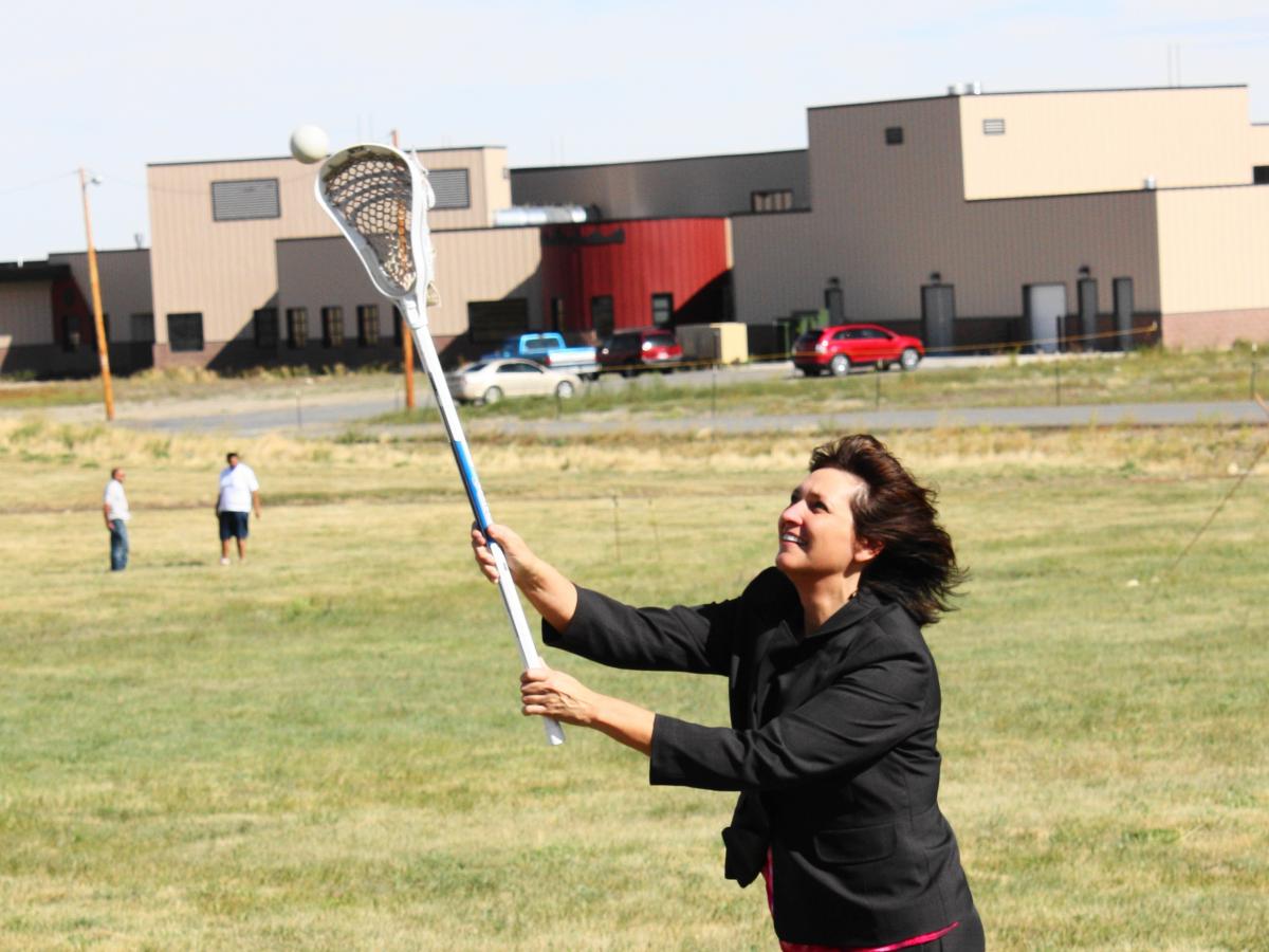 Superintendent Denise Juneau playing Lacrosse. Photo Credit: Claire Worth