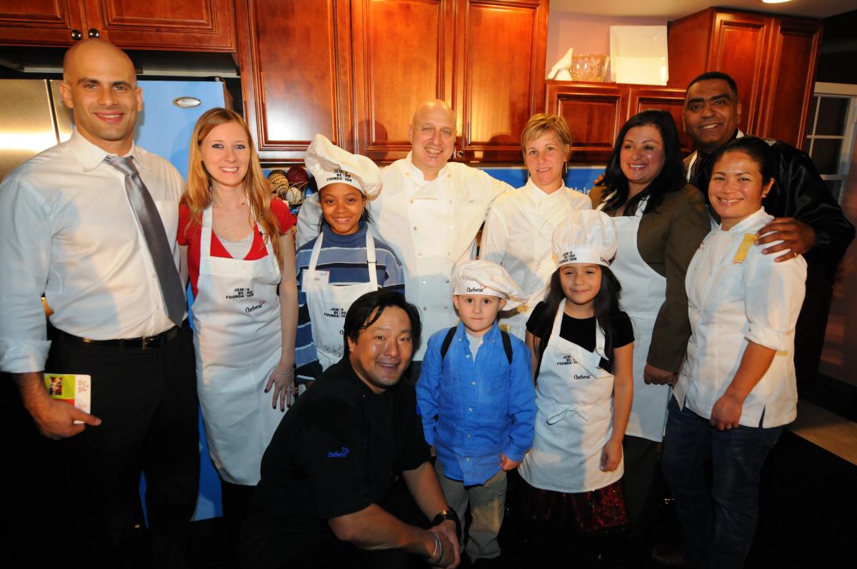 Back row, L to R - Sam Kass, Kim Mrkva (judge), Haile Thomas (host of Kids Can Cook!), Tom Colicchio, Holly Smith, Laura Castillo (judge), Antonio Ferro (judge), Maria Hines. Front row, L to R: Ming Tsai, Austin Jackson (judge), Jeshua Ferro (judge).