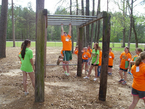 4-H campers enjoy incorporating fitness into a healthy lifestyle. Here, participants work to complete an obstacle course.