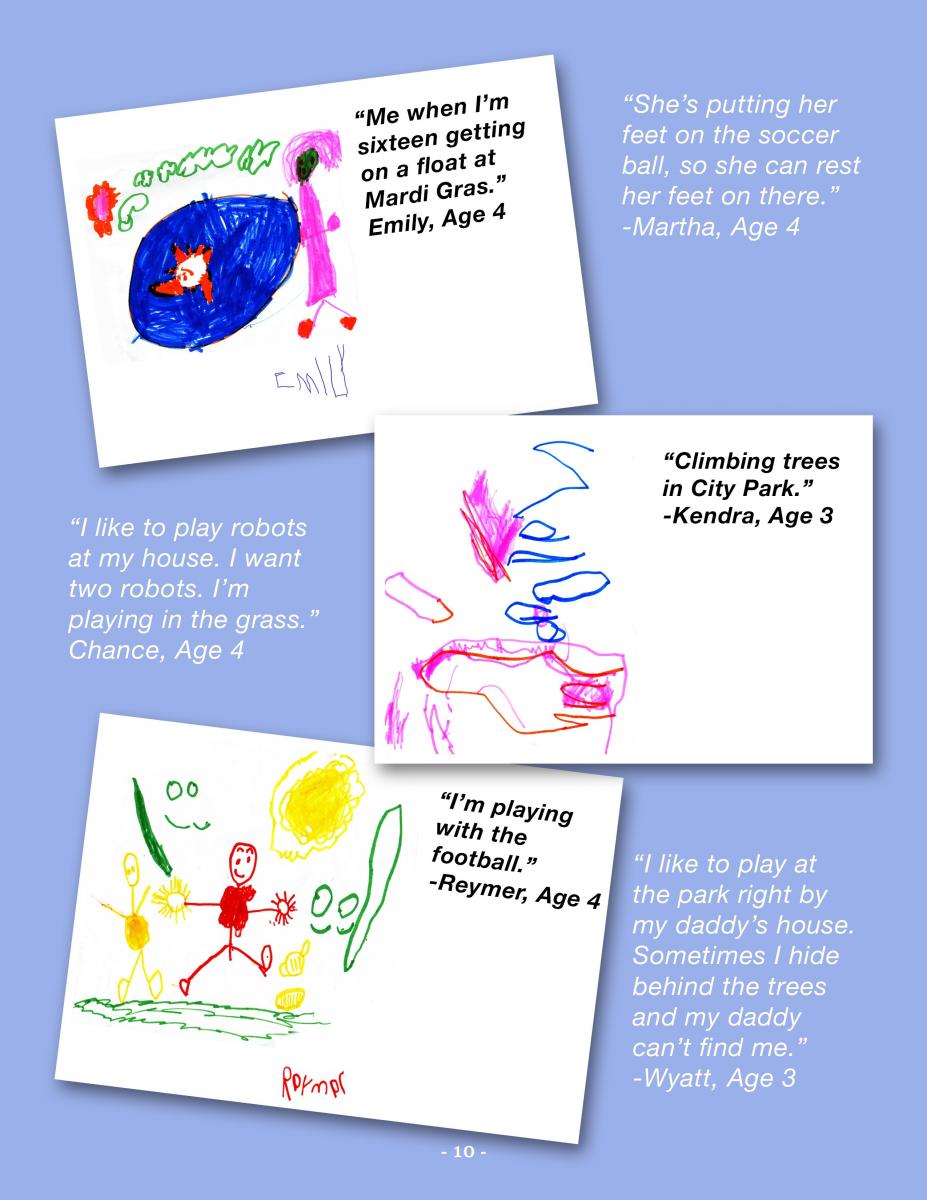 Recognizing that healthy lifestyle habits begin early in life, the museum asked four-year-olds from community Head Start centers and nursery schools to talk about the places they play to stay active and healthy. Children discussed their favorite parks, sports, and games, and then drew illustrations of family members, friends, and pets playing together. Places to Play in New Orleans was published in time to celebrate a world championship watched by millions of fans across the globe.