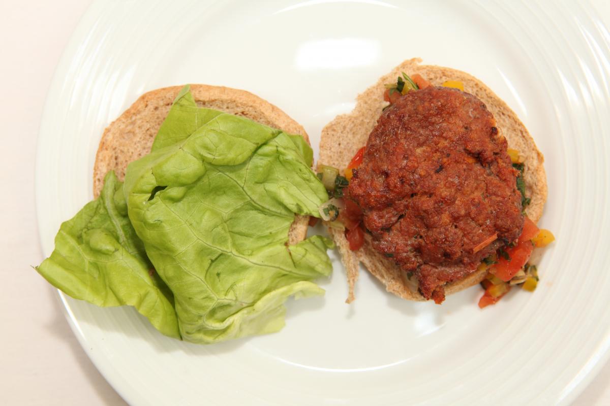 “I chose this recipe because it uses ingredients that Vermont is known for. Some of my favorite Vermont products are apples, maple syrup, and cheese,” says Colin. “Champ is the mascot of our local baseball team. He is active and fun and I bet he would love this burger! I bet he would also be happy that so many fruits and vegetables are hidden in the burger. I love to eat this with fresh apple slices or baked sweet potato French fries.” - Colin Hurliman, age 9, Vermont