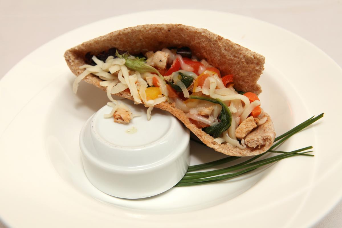 - Open the pita pockets and place a quarter of the chicken cubes inside each one. Add a few tablespoons of sauce to each pita and sprinkle with mozzarella cheese. Arrange the pita pizza pockets on a large baking sheet and bake until the cheese is melted, 8 to 10 minutes.