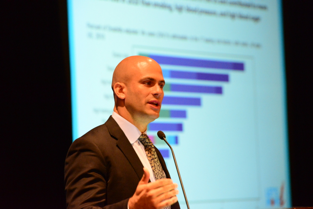 Sam Kass explains data from a new University of Washington study on the importance of diet for healthy life (Photo by Larry Levin)