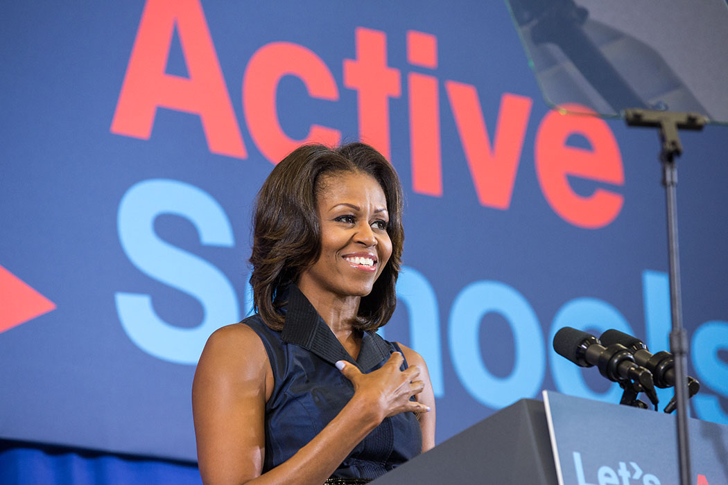 First Lady Michelle Obama delivers remarks during a back to school "Let's Move! Active Schools" event at Orr Elementary School in Washington, D.C., Sept. 6, 2013. (Official White House Photo by Amanda Lucidon)