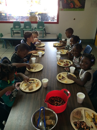 Children enjoy a meal family-style at the Oakridge Child Care Center in Orlando, Florida