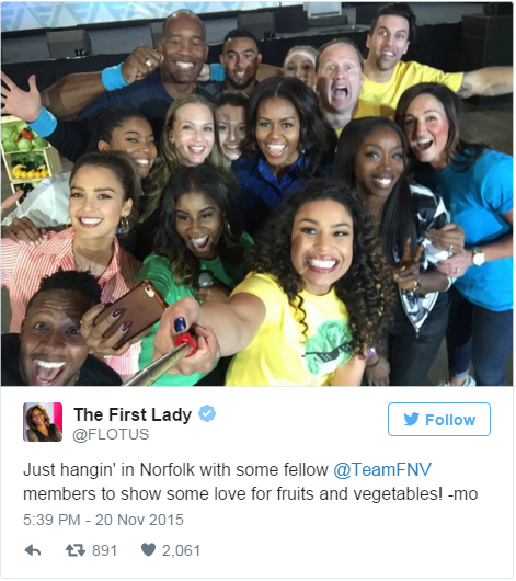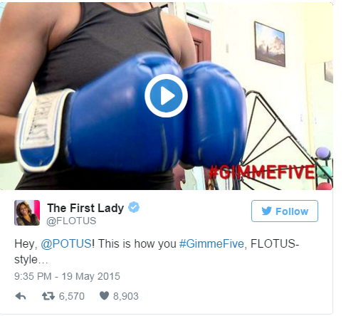 And of course, how could we ever forget when the First Lady shared her workout routine after the President challenged her to #GimmeFive FLOTUS-style.